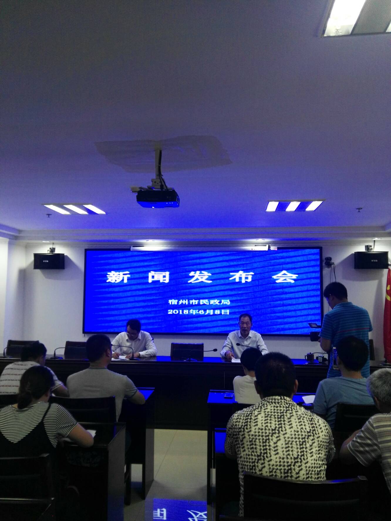 6月8日,宿州市民政局召开“全市城乡低保和特困人员供养提标、失能特困人员集中供养方案”新闻发布会,市民政局领导班子成员,局机关全体人员,局属单位负责人参加,会议由市民政局党组成员、副局长李惠海主持,社会救助科负责人作为新闻发言人具体进行政策解读,宿州新闻网、市拂晓报社、市广播电视台、宿州发布网、宿州发布等媒体应邀参加了发布会。